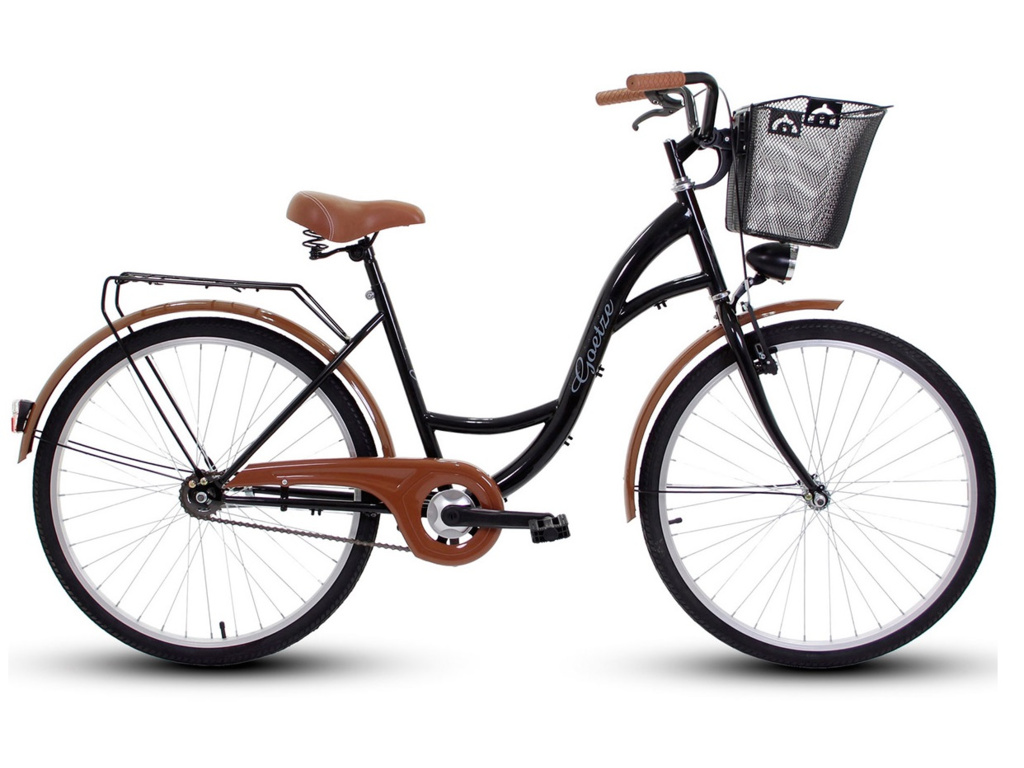 Elegantní městské kolo v retro designu, vhodné pro ježdění po městě i na venkově. Tuhý ocelový rám je díky snížené konstrukci uzpůsobený pro pohodlné nastoupení a vhodný pro výšku postavy cca od 158 do 178 cm. Součástí je přední košík s designovou výstelkou, kvalitní LED osvětlení, blatníky, zadní nosič, stojan a bezpečnostní kryt řetězu.
