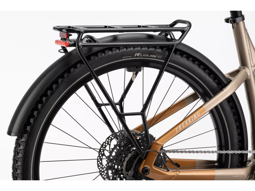 Lehkost se snoubí s dobrodružstvím. Náš nový TREKKING 6.5 zaujme dokonalou rovnováhou pohodlí, všestrannosti a každodenní praktičnosti. Elektrokolo, se kterým bude vaše dojíždění stejně pohodlné jako vaše dobrodružství ve volném čase – a umožní vám výlety s brašnami, kdykoli budete potřebovat. Spolehlivý a výkonný motor Bosch Performance CX zajišťuje plynulou jízdu. Integrovaná 600Wh baterie zároveň poskytuje dostatek energie pro vaše každodenní dobrodružství s možností přidat dalších 250Wh prostřednictvím volitelného Range Extender. Díky robustnímu zadnímu nosiči, rozšiřitelnému úložnému prostoru pomocí Modular Rail System a maximální nosnosti až 150 kg jsou přepravy hračkou. Jak již bylo zmíněno, tento model kombinuje lehkost a dobrodružství – vše v jednom elektrokole.