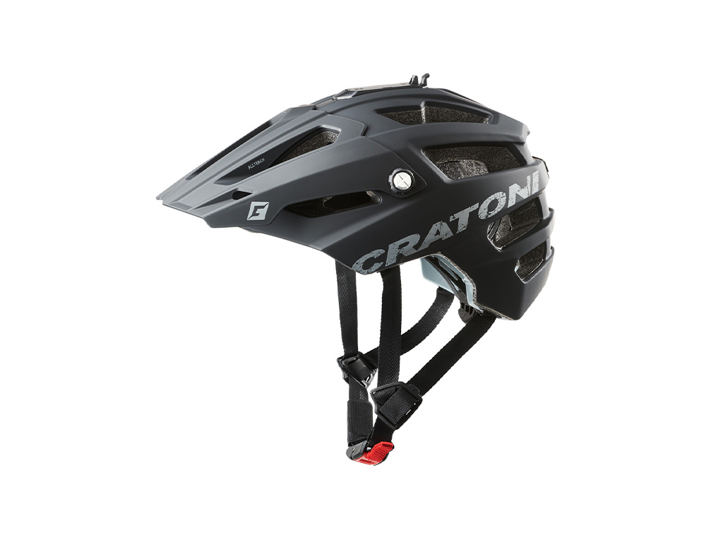 CRATONI Alltrack je špičková All Mountain helma pro pokročilé jezdce. Má mnoho speciálních funkcí, jako je fixace kamery s bezpečnostní pojistkou, nastavitelná výška a uzamykatelný kšilt, úchyt pro brýle.