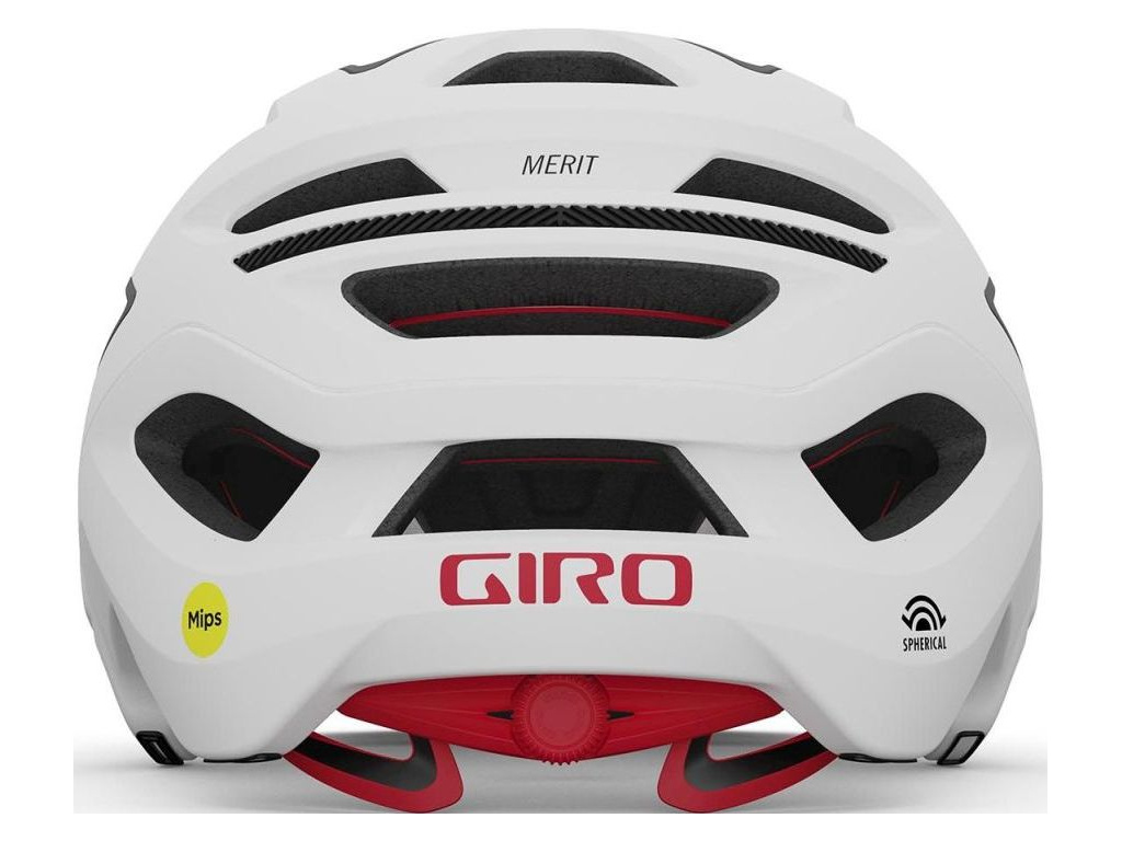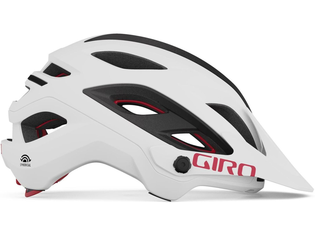 GIRO Merit Spherical je špičková dámská trailová helma postavená na unikátní technologii Spherical Technology Powered by MIPS (technologie na principu kloubu). Skořepina se skládá ze dvou částí vložených do sebe a spojených pomocí žlutých elastomerů. Celý systém vytváří jakési odpružení, které absorbuje síly v případě nárazu. Vnější skořepina je navíc vyrobena z tvrdšího, odolnějšího materiálu. Výsledkem je luxusně odvětraná, bezpečná a komfortní helma. Masivní ventilační otvory v kombinaci s vnitřními kanály doslova nasávají čerstvý vzduch a protahují ho kolem hlavy i na nejrozpálenějších stoupáních. Antibakteriální výstelky Ionic+ absorbují pot a jsou velice příjemné na dotyk. Usazení na hlavě zajišťuje patentovaný upínací systém Roc Loc Trail Air.