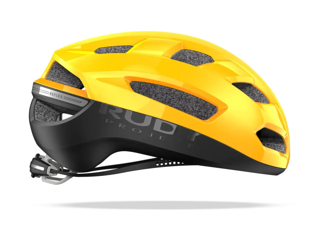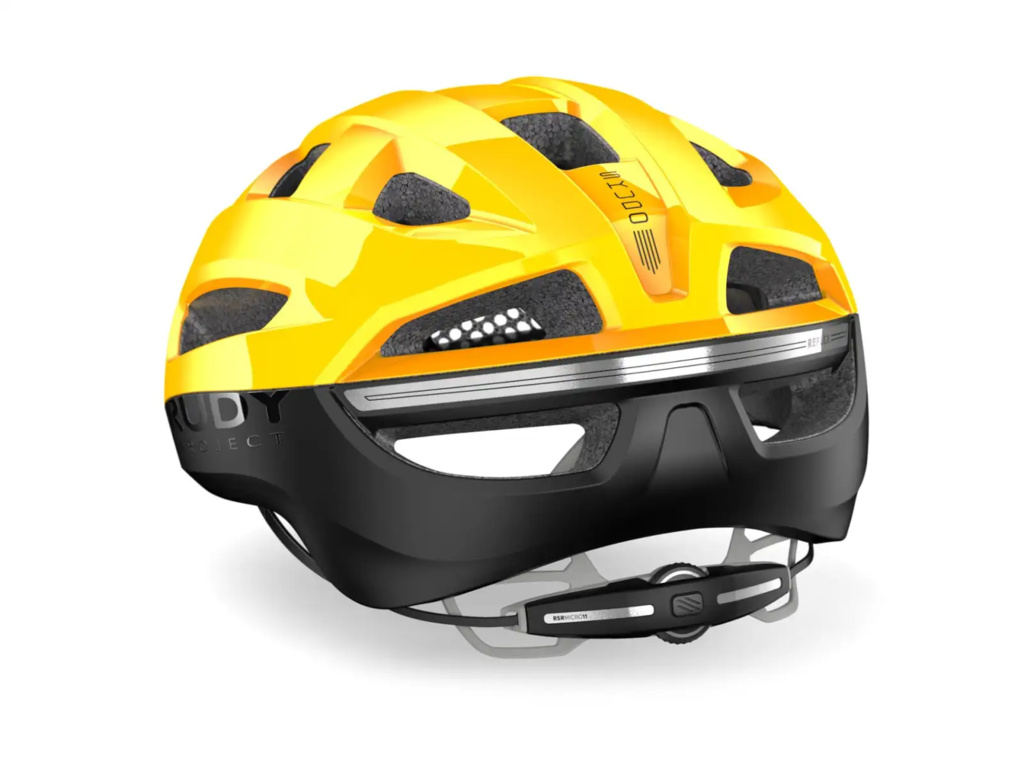 Rudy Project Skudo je univerzální cyklistická helma pro silnici i MTB, postavená na kombinaci nízké hmotnosti, vysokého komfortu a velmi účinného odvětrání. Díky 23 ventilačním otvorům a promyšlenému vedení vzduchu vnitřními kanály dobře funguje i v horku a při vyšší intenzitě – proudění navíc pomáhá odvádět pot od hlavy. O stabilní usazení se stará systém Air Frame Band a jemné doladění velikosti umožňuje plně nastavitelný retenční systém RSR11. Na zadní části nechybí reflexní prvek pro lepší viditelnost.