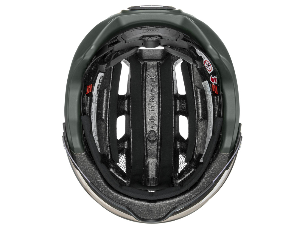 Uvex Finale Visor je cyklistická přilba vhodná pro jízdu po městě. Je to první double inmould přilba s integrovaným zorníkem, která kombinuje přilbu s ochranou zraku. Uvex zorník nabízí ochranu před větrem i UV zářením. Konstrukce přilby je lehká a kompaktní. O perfektní ventilaci se postará 20 větracích otvorů. Pohodlné a bezpečné uchycení na hlavě zajistí IAS anatomic systém a monomatic přezka.