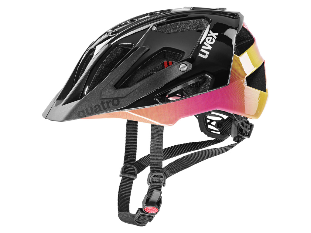 Cyklistická přilba Uvex Quatro dodává silný pocit bezpečí díky svým vynikajícím vlastnostem. Dvojitá stavba inmould je trvalejší a více odolná proti nárazu, tím pádem je zajištěna maximální bezpečnost a vy se tak už tolik nemusíte bát pádu. 17 integrovaných ventilačních kanálů zaručuje vynikající větrání, zatímco zcela nový anatomicky IAS dimenzovaný systém se dokonale přizpůsobí každému tvaru hlavy. Kromě toho lze prakticky nastavit sklon přilby přímo při jízdě a zajistit si tak lepší výhled. Na první pohled vás také zaujme barevné rozdělení příčného kšiltu a zadní části. Helma Uvex Quattro prostě vytváří fascinující sladění mezi barvami, které vizuálně odráží aerodynamiku a jedinečný kompaktní design.