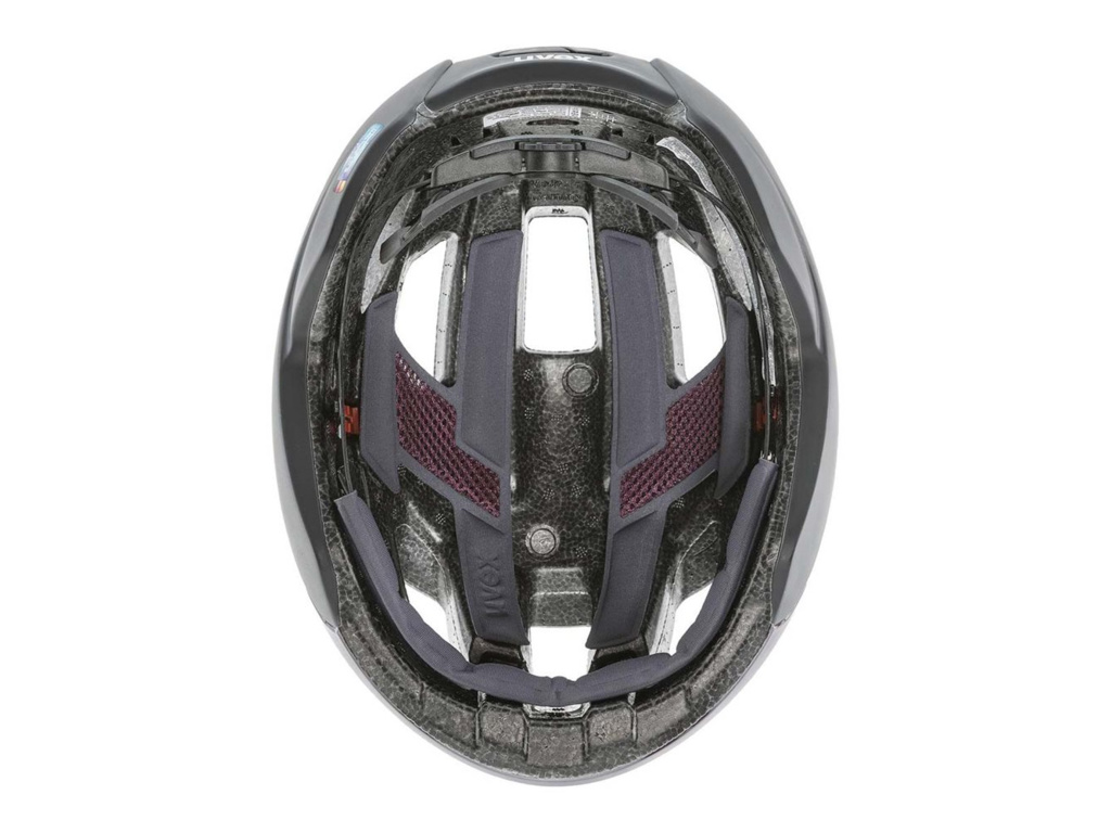 Štíhlá silueta, nízká hmotnost a extrémně dobré odvětrání – vysoce výkonná silniční cyklistická přilba UVEX Rise zaujme matným povrchem a vynikající úrovní bezpečnosti.