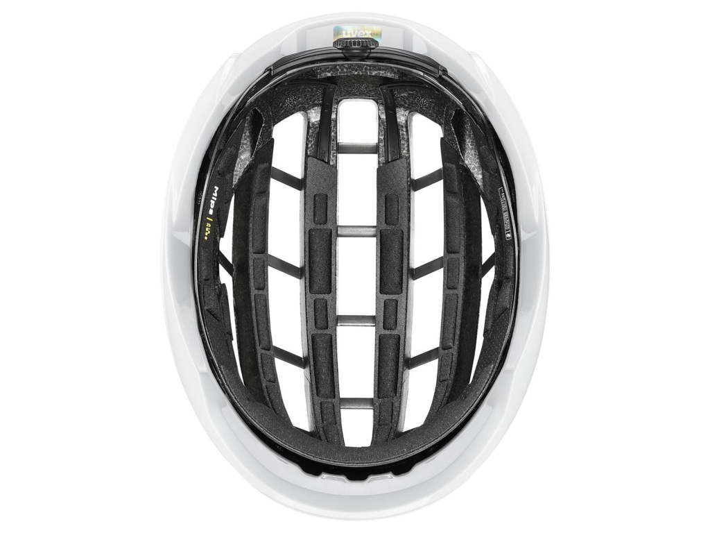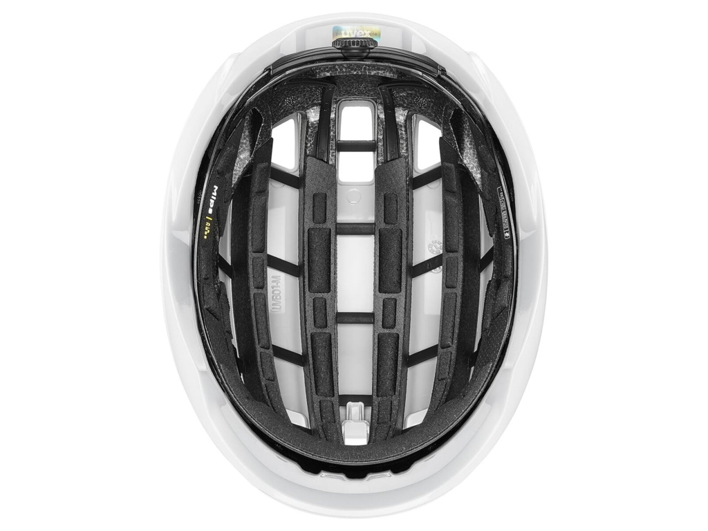 O vysokou pevnost při zachování nízké hmotnosti se stará konstrukce Multi Inmould s integrovanou pěnovou výztuží. Bezpečnost dále posiluje systém Mips® Air Node, který pomáhá snižovat rotační síly při šikmých nárazech a tím zvyšuje úroveň ochrany. Ergonomický uvex 3D IAS Pro system umožňuje rychlé a přesné doladění velikosti, aby helma seděla stabilně bez tlakových bodů i při závodním tempu.