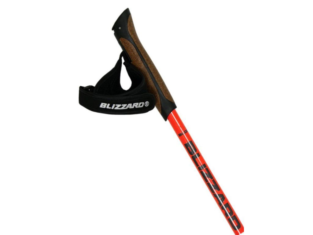 Běžkařské hole značky Blizzard. Hole na běžky v kombinaci černé a oranžové barvy. Běžecké hole mají pohodlnou korkovou rukojeť, na které je odnímatelná rukavička. Ta se dá individuálně nastavit pomocí suchého zipu.