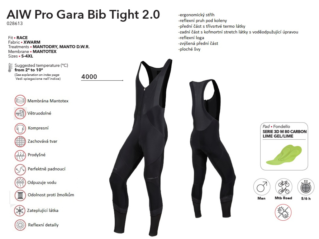 Pánské větruodolné čapáky NALINI Pro Gara 2.0 se šlemi a s membránou Mantotex, ideální pro teploty od 2° do 10° C.