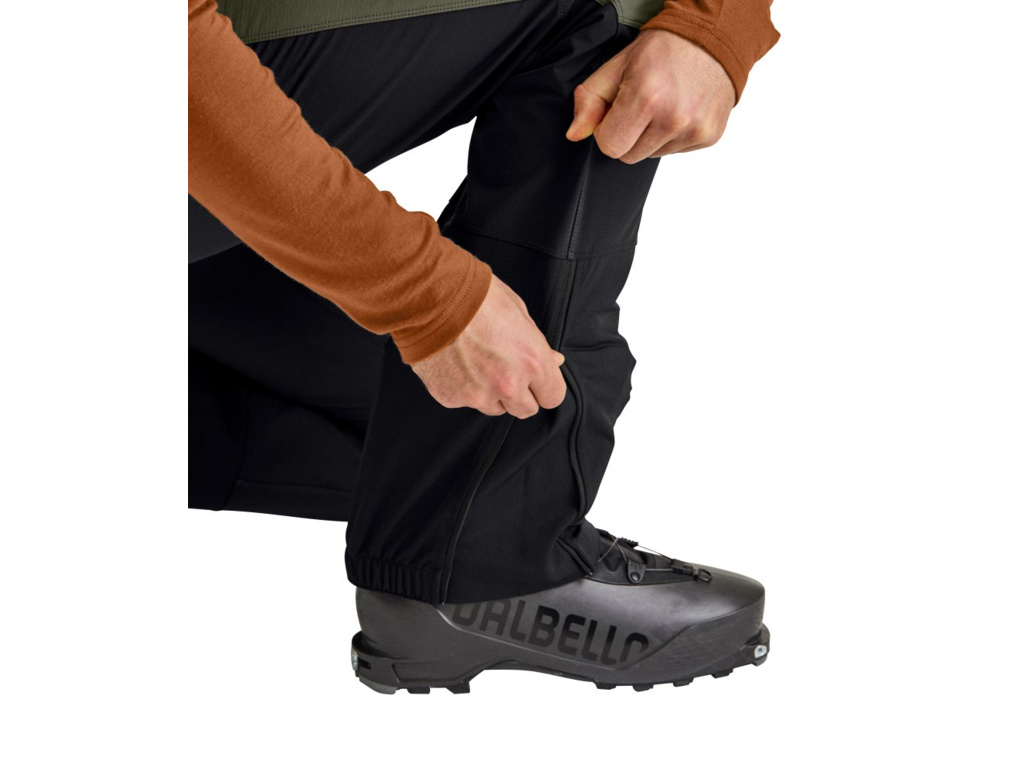 Nohavice kalhot ORTOVOX PUNTA BERRINO PANTS M jsou skvěle přizpůsobeny pro kompatibilitu s lyžařskými botami. Pomocí zipu u kotníku je rozepneš a převlékneš přes lyžáky. Na oblast kotníků byl použitý velmi odolný softshell od značky Schoeller®, aby byly kalhoty odolné proti ostrým hranám lyží nebo maček.
