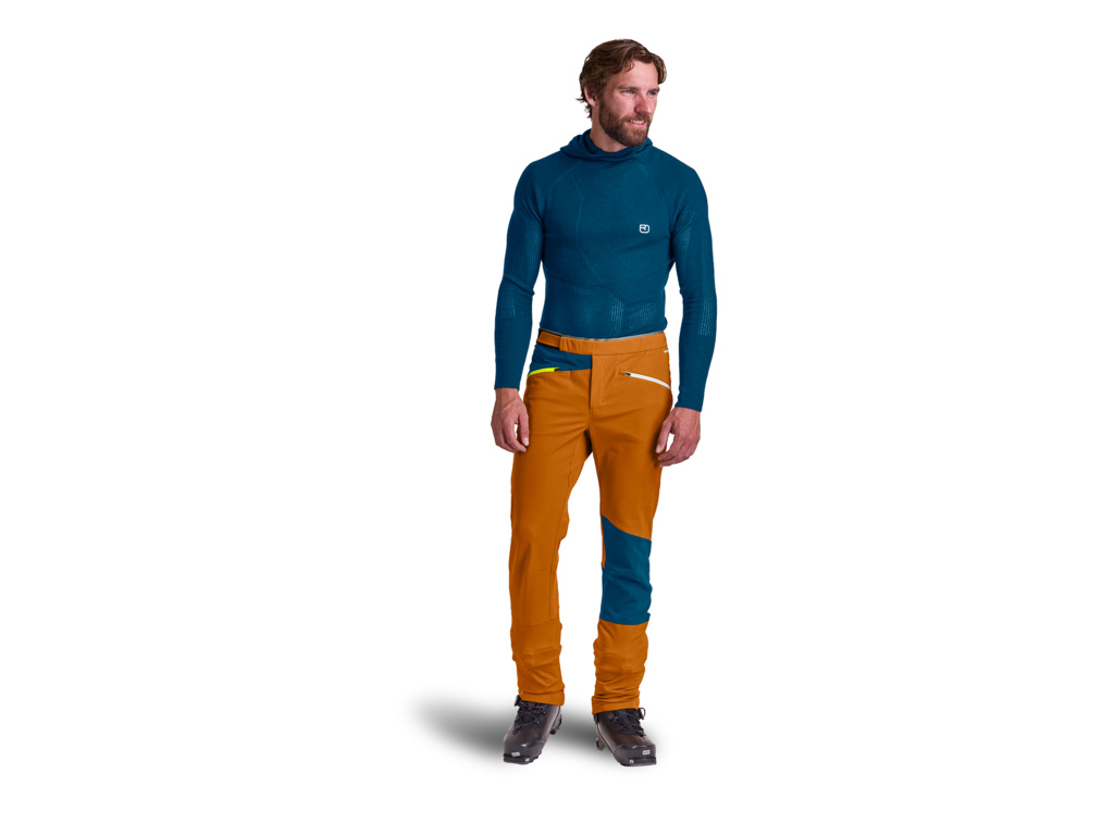 Kalhoty ORTOVOX COL BECCHEI PANTS M jsou všestranným společníkem na skialpinismus i v náročných podmínkách. Vnější odolný materiál a vnitřní funkční vlna dohromady vytváří skvělé kalhoty na které se můžeš vždy spolehnout. Strečový materiál a ergonomický střih ti zabezpečí maximální komfort a volnost pohybu i při náročném fyzickém výkonu.