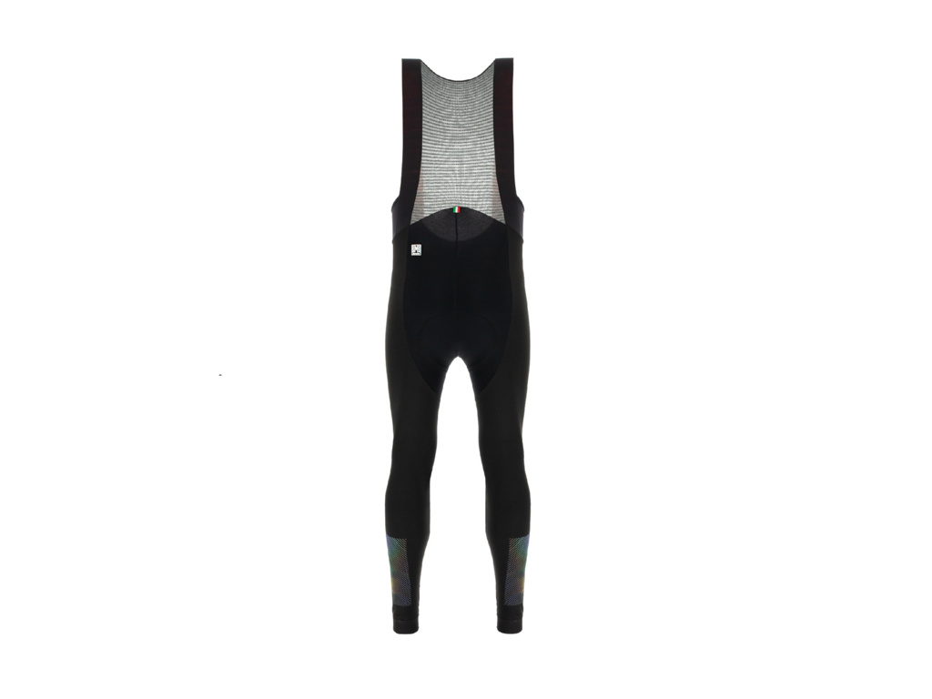 SANTINI Adapt Wool jsou voděodolné Mid-season cyklistické kalhoty vyrobeny z termoregulační merino a polyamidové tkaniny POLARTEC® Power Wool v kombinaci s materiálem Sitip®'s Blizzard, který je ideální pro různé povětrnostní podmínky od mrazivých zimních výpadů až po brzké jarní vyjížďky. Model byl navržen tak, aby se přizpůsobil tělu a poskytoval mu skvělou tepelnou rovnováhu. Ergonomický střih kolen a systém šlí se strečovou tkaninou POLARTEC® Power grid na zádech perfektně sednou a jsou pohodlné. Výrazné duhové reflexní detaily na spodní části nohavic podporují styl a vložka C3 je vybavena ochrannou skořepinou a ergonomickým 3D povrchem pro jedinečné pohodlí.