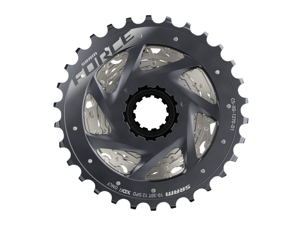 12rychlostní kazeta SRAM Force® XG-1270 je optimalizovaná pro elektronické řazení a využívá technologii zpřevodování X-Range™. Kompatibilní s ořechem XDR.