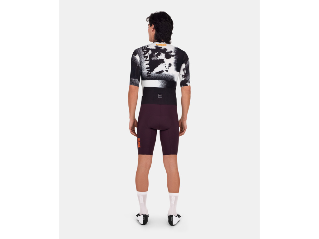 SANTINI Madss (MEGA AERODYNAMIC SPEED SHELL) je profesionální závodní kombinéza, která přináší bezkonkurenční aerodynamický výkon. Vyrobena z lehké a prodyšné Lycra tkaniny, která zajišťuje příjemný pocit svěžesti a dokonale přiléhá k tělu jako druhá kůže. Nízký límec a aerodynamické rukávy s čistě střiženými okraji zajišťují přesné a stabilní usazení.