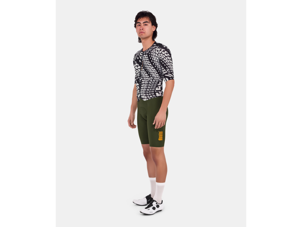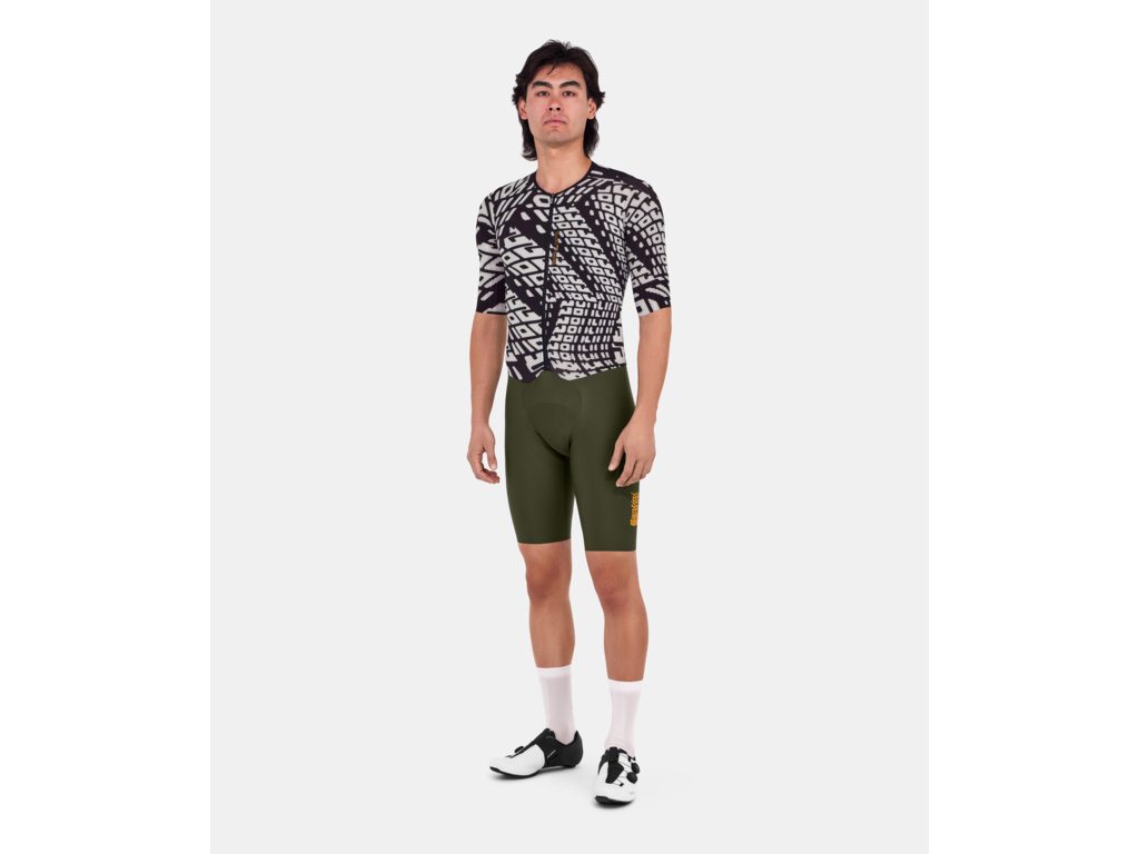 SANTINI Madss (MEGA AERODYNAMIC SPEED SHELL) je profesionální závodní kombinéza, která přináší bezkonkurenční aerodynamický výkon. Vyrobena z lehké a prodyšné Lycra tkaniny, která zajišťuje příjemný pocit svěžesti a dokonale přiléhá k tělu jako druhá kůže. Nízký límec a aerodynamické rukávy s čistě střiženými okraji zajišťují přesné a stabilní usazení.