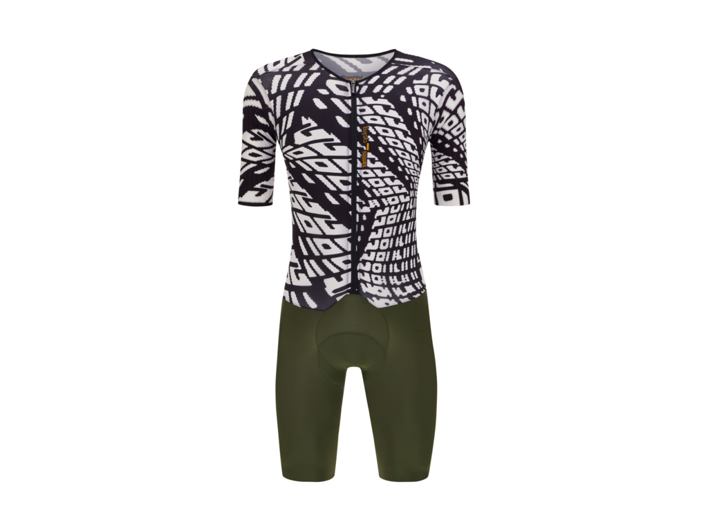 Silniční Lycrová kombinéza SANTINI MADSS , což je zkratka pro MEGA AERODYNAMIC SPEED SHELL, je mistrovským dílem z hlediska aerodynamického výkonu pro závodní cyklisty.