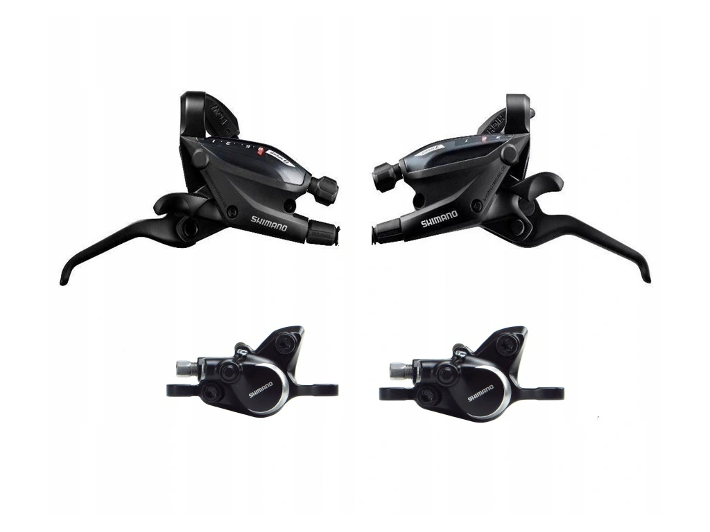 Hydraulické kotoučové brzdy SHIMANO ST-EF505 + BR-MT200 s integrovanou řadicí páčkou jsou jedny z nejlevnějších kotoučových brzd na trhu, ale přitom se dají srovnat s podstatně dražšími brzdami. Sada přední i zadní brzdy.