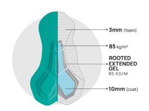 Tyto bib shorts jsou vyrobeny z kompaktního, elastického italského materiálu s technologií power compression, která poskytuje střední kompresi bez pocitu stažení. Materiál je odolný, zachovává si tvar i funkční vlastnosti i po mnoha jízdách. Šle z lehké mikro síťoviny zaručují vynikající ventilaci a rychlé schnutí. Nohavice zakončuje elastický lem s hladkým „raw-cut“ provedením a vnitřním silikonovým gripem pro perfektní držení.