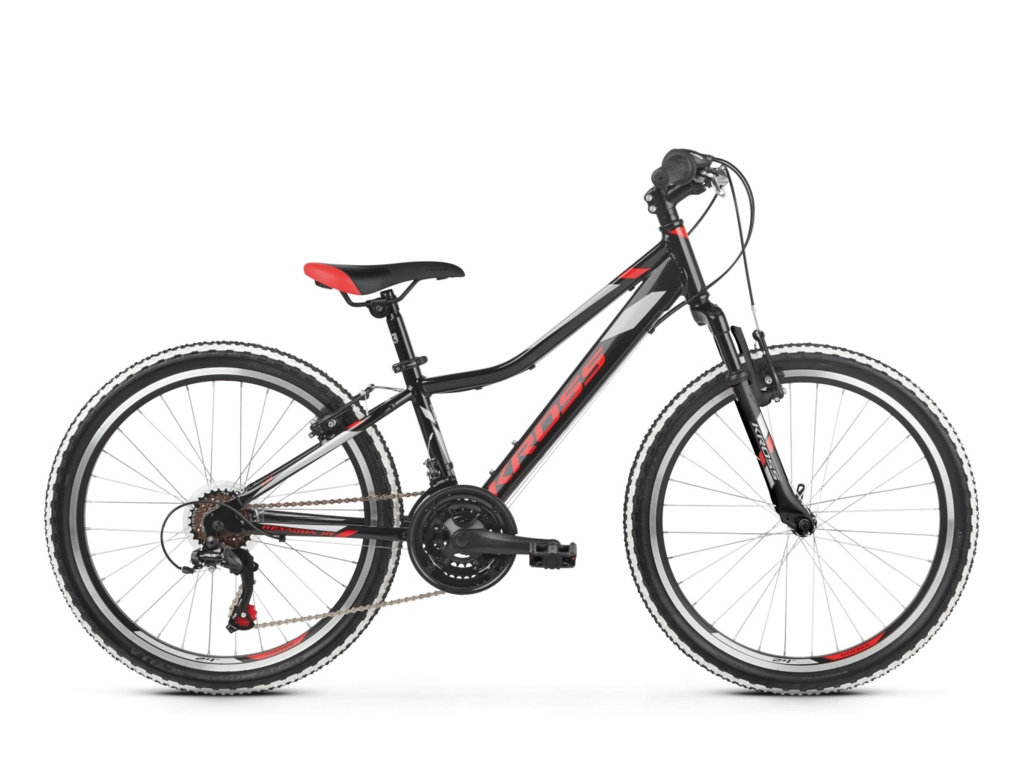 Kross Hexagon JR je model horského kola na 24 palcových kolech. Ideální varianta pro dospívající děti s výškou postavy nad 125 cm. Výbavu tvoří odpružená vidlice Kross se zdvihem 50 mm, ráfkové brzdy a řazení Shimano s 1x8 převody.