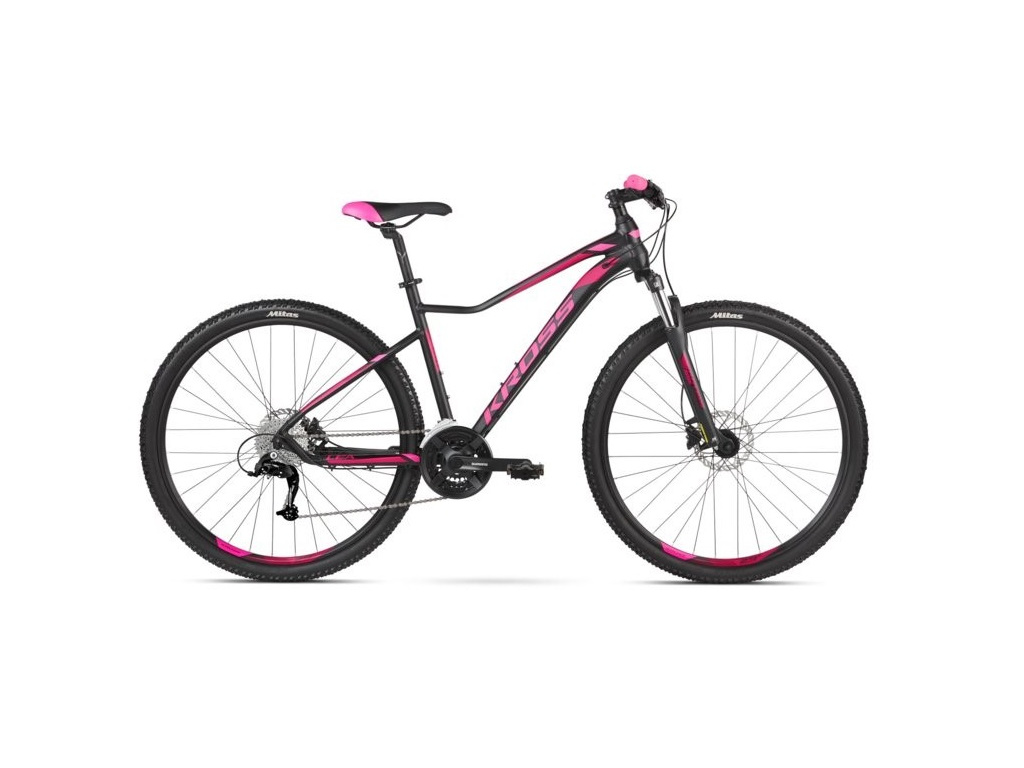 Dámské horské kolo Kross Lea 6.0 slušně vybavené kolo pro rekreační vyjížďky do přírody a po cyklostezkách. Lehký hliníkový rám s prohnutou horní rámovou trubkou je osazen odpruženou vidlicí Suntour, hydraulickými brzdami a 3x8 převody.