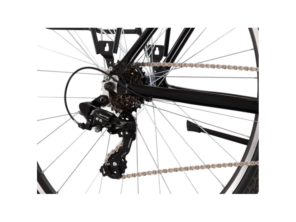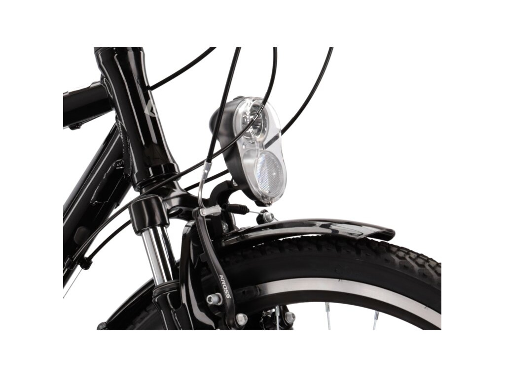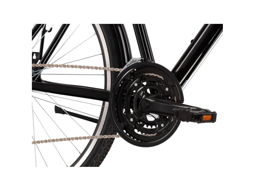 Každodenní jízda do práce i na nákupy, víkendové vyjížďky do přírody a objevování nových cyklostezek. Tam všude se hodí KROSS Trans 1.0. Hledáte-li jednoduchou eleganci a kvalitu za rozumnou cenu, nasedněte na všestranné 28palcové kolo s odpruženou vidlicí pro vaše pohodlí, řazením SHIMANO s 3x7 převody, spolehlivými brzdami, ale především praktickým vybavením – blatníky, stojanem, zadním nosičem a světly.