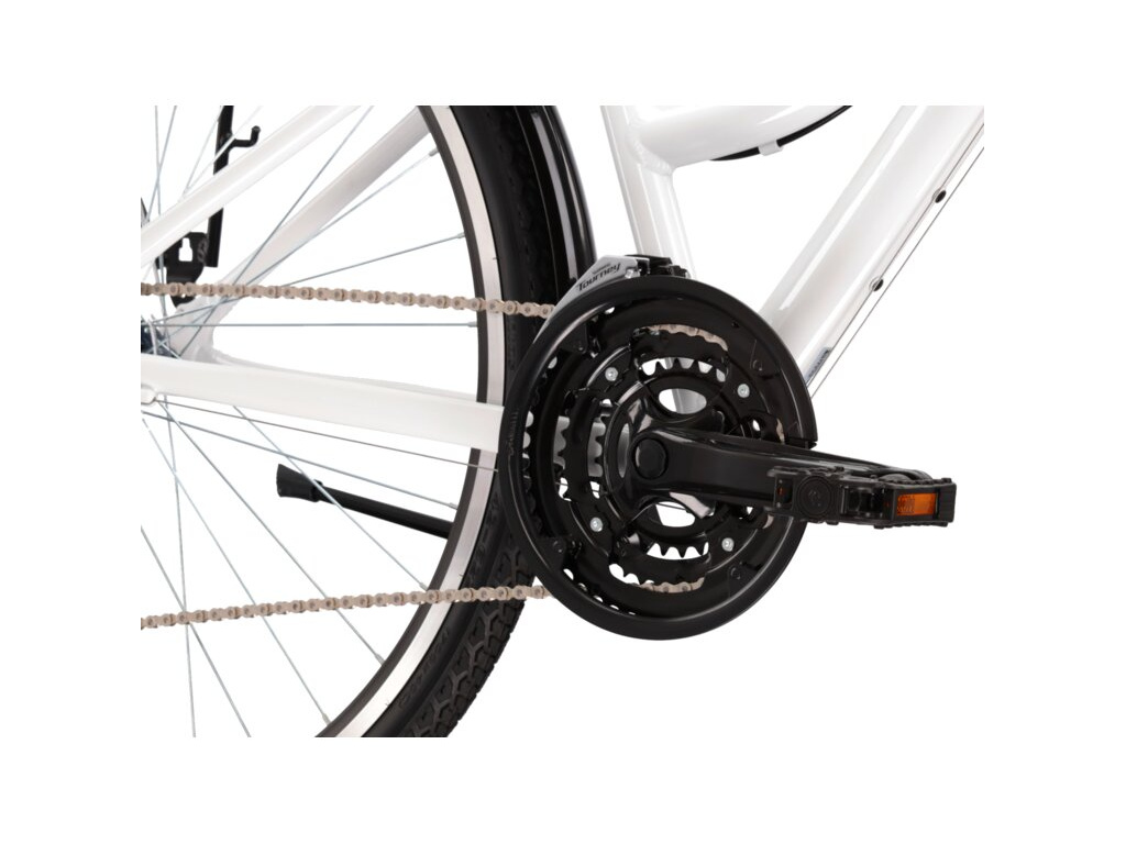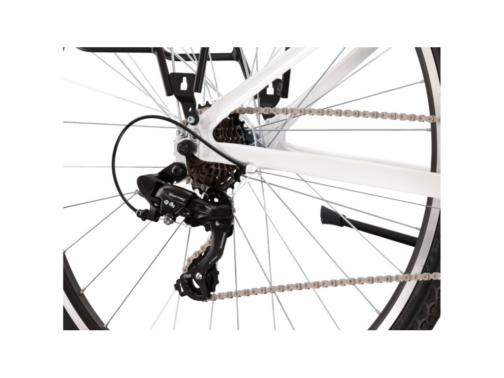 Každodenní jízda do práce i na nákupy, víkendové vyjížďky do přírody a objevování nových cyklostezek. Tam všude se hodí dámská varianta trekingového kola KROSS Trans 1.0 Lady. Hledáte-li jednoduchou eleganci a kvalitu za rozumnou cenu, nasedněte na všestranné 28palcové kolo s odpruženou vidlicí pro vaše pohodlí, řazením SHIMANO s 3x7 převody, spolehlivými brzdami, ale především praktickým vybavením – blatníky, stojanem, zadním nosičem a světly.