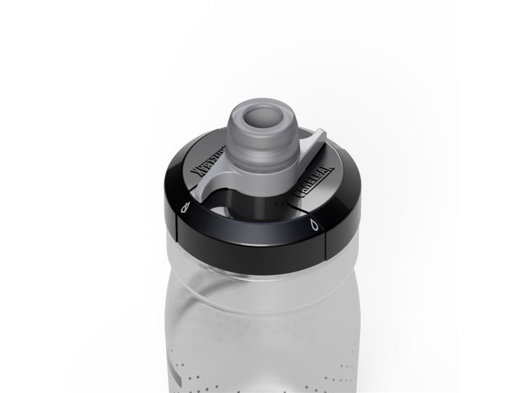 Lahve CamelBak Podium jsou vyrobeny z BPA, BPS a BPF-free polypropylenu, který zajišťuje věrnou chuť nápoje bez plastové pachuti. Díky patentovanému samouzavíracímu náustku Jet Valve z medicínského silikonu voda z lahve nekape na rám. Navíc je vybavena úplným otočným uzávěrem (lock-outem) pro přepravu plných lahví v tašce nebo v autě.