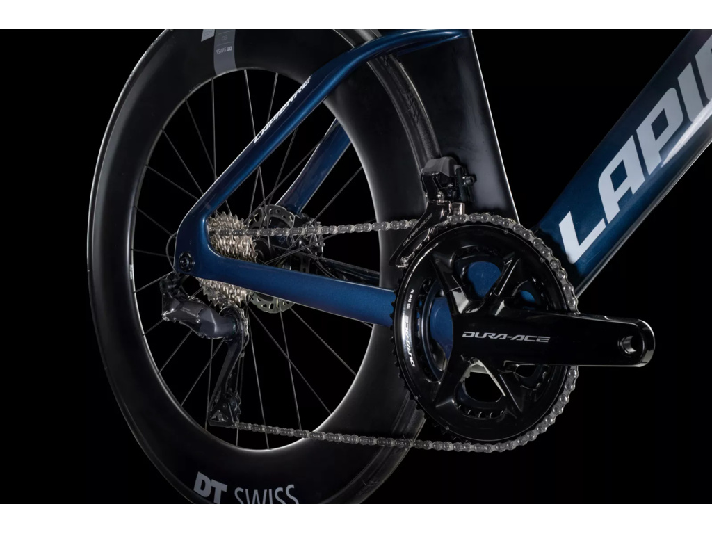 Kokpit je plně integrovaný, vyrobený z UD karbonu s karbonovými nástavci, navržený tak, aby sportovci poskytl nejlepší poměr komfortu, výkonu a hmotnosti. Kolo je vybaveno zapletenými koly DT Swiss ARC1400 Dicut, které zajišťují potřebnou všestrannost pro stoupání i optimalizaci rychlosti na rovině. Výška ráfků je 62 mm vpředu a 80 mm vzadu (Centerlock, Tubeless Ready). Pláště jsou Continental GP5000S TR Tubeless ready 25-622. Hmotnost kompletního kola je 8,4 Kg.