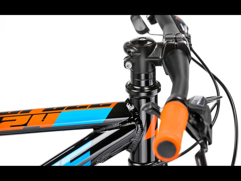 Chlapecké kolo s 24" koly vhodné pro děti s výškou postavy od 125 do 155 cm. Tento bike je určený dětem, má už ale spoustu vymožeností, které známe z dospělých modelů. Rám z lehké hliníkové slitiny Supreme 4 je osazen odpruženou vidlicí SUNTOUR a kvalitními komponenty SHIMANO s 21 převody a páčkovým řazením. Nechybí samozřejmě lakování v kontrastních barvách, které se líbí dětem a jde dobře vidět na silnici.