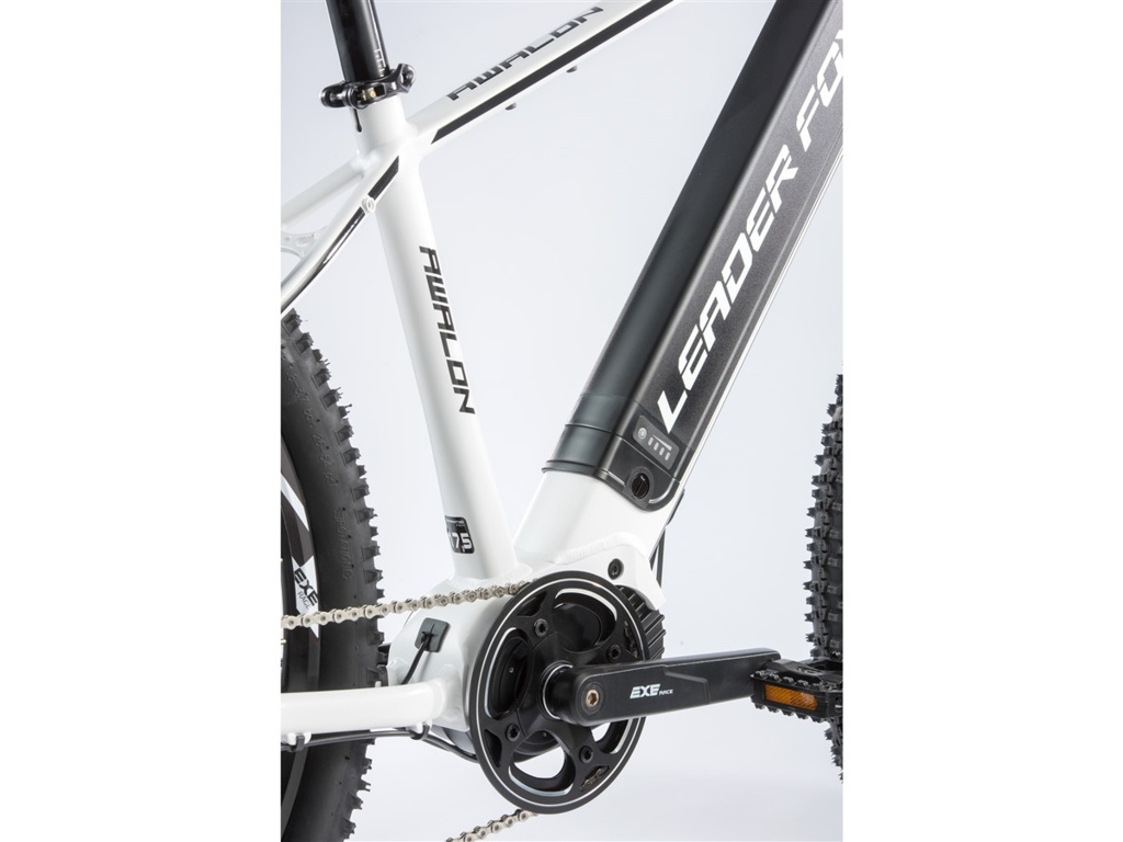 Leader Fox AWALON je vybaven středovým motorem Bafang Modest s nominálním výkonem 250W a max. výkonem 350W. Tento motor se mimo jiné může pochlubit vysokým kroutícím momentem, který může dosáhnout hodnoty až 80 Nm a je vybaven torzním snímačem síly šlapání. To znamená, že čím větší silou cyklista šlape, tím větší silou motor pomáhá. Systém se ovládá pomocí barevného LCD displeje a tlačítkového ovladače umístěného na řídítkách.