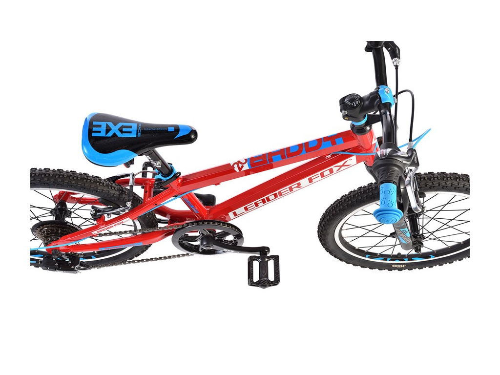 Leader Fox Baddy 20" je dětské kolo vhodné pro děti s výškou postavy od 120cm do 135cm. Základem je hliníkový rám, který je osazen odpruženou vidlicí a komponenty Shimano s 6 převody. Součástí kola je praktický stojan a zvonek.