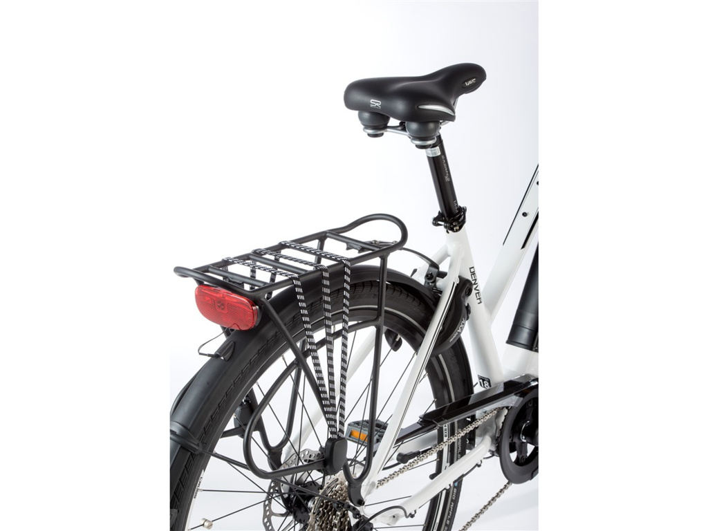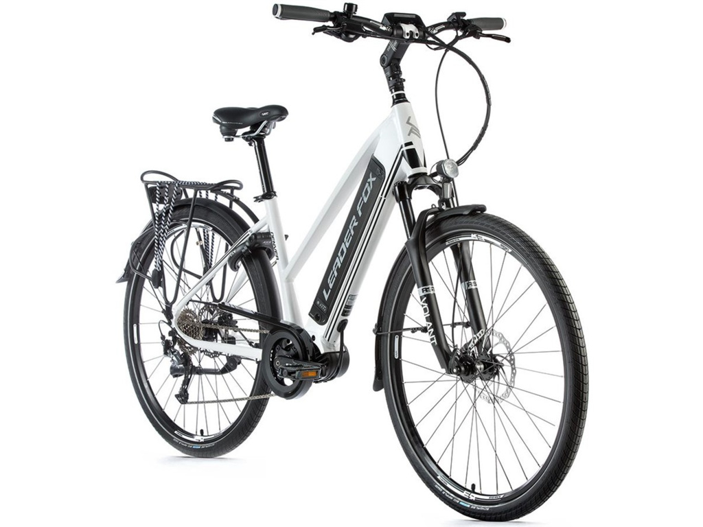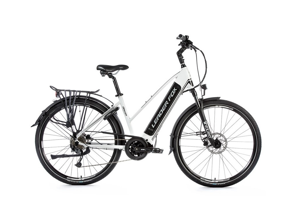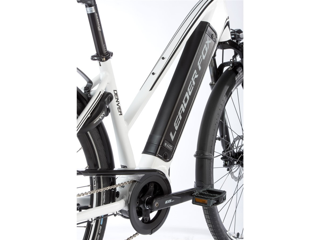 Dámské trekingové elektrokolo Leader Fox Denver vybavené výkonným středovým motorem Bafang Modest a integrovanou rámovou baterií s vysokou kapacitou 630 Wh. Nový Denver je standardně osazen blatníky, LED osvětlením, zadním nosičem, zámkem zadního kol