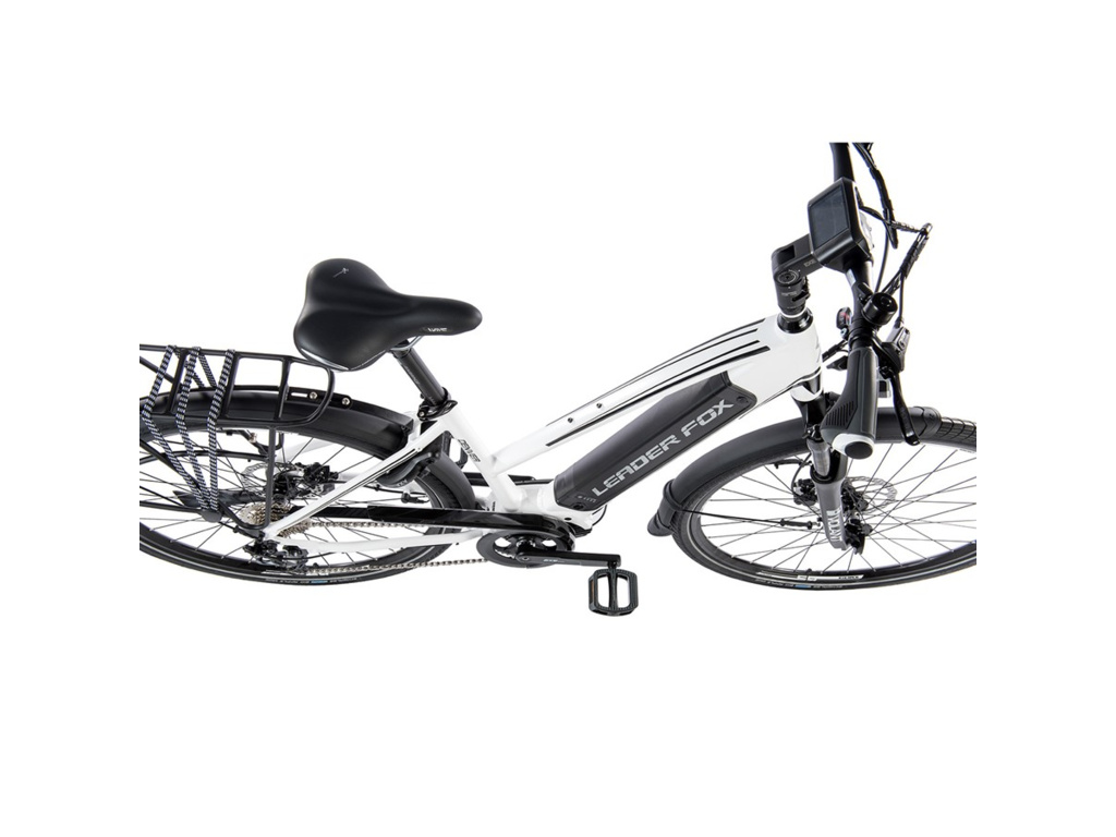 Dámské trekingové elektrokolo Leader Fox Denver Lady vybavené výkonným středovým motorem Bafang Modest a integrovanou rámovou baterií s vysokou kapacitou 630 Wh. Nový Denver Lady je osazen odpruženou vidlicí RST Volant TnL, hydraulickými kotoučovými brzdami a řazením Shimano s 8 převody. Dále mu nechybí blatníky, LED osvětlení, zadní nosič, zámek zadního kola a stojan.