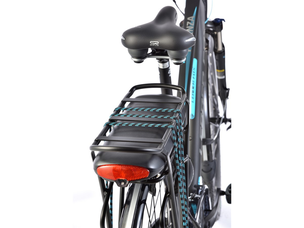 Dámské trekingové elektrokolo Leader Fox Forenza Lady poháněná spolehlivým motorem Bafang umístěném v zadním náboji a baterií o vysoké kapacitě 576 Wh na zadním nosiči. Nová Forenza je vybavená hydraulickými kotoučovými brzdami, uzamykatelnou vidlicí a řazením Shimano s 3x7 převody. Dále je standardně vybavena plastovými blatníky, kvalitním LED osvětlením, zámkem zadního kola, krytem řetězu a praktickým stojánkem.