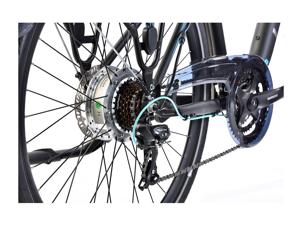 Novinkou je baterie s výkonnými články LG s kapacitou 16Ah (576Wh) umístěná na zadním nosiči a zadním integrovaným světlem. Dalším plusem je nová rychlo nabíječka s nabíjecím proudem 3A (dříve 1,8A). Díky níž se výrazně zkrátí doba nabíjení baterie. Elektrokolo je vybaveno zadním motorem BAFANG s nominálním výkonem 250W a max.výkonem 350W (EU NORMA EPAC EN15194). Motor vyniká především svým plynulým chodem, nadprůměrným výkonem ve stoupání a tichým chodem. Systém se ovládá pomocí barevného LCD displeje a tlačítkového ovladače umístěného na řídítkách.<