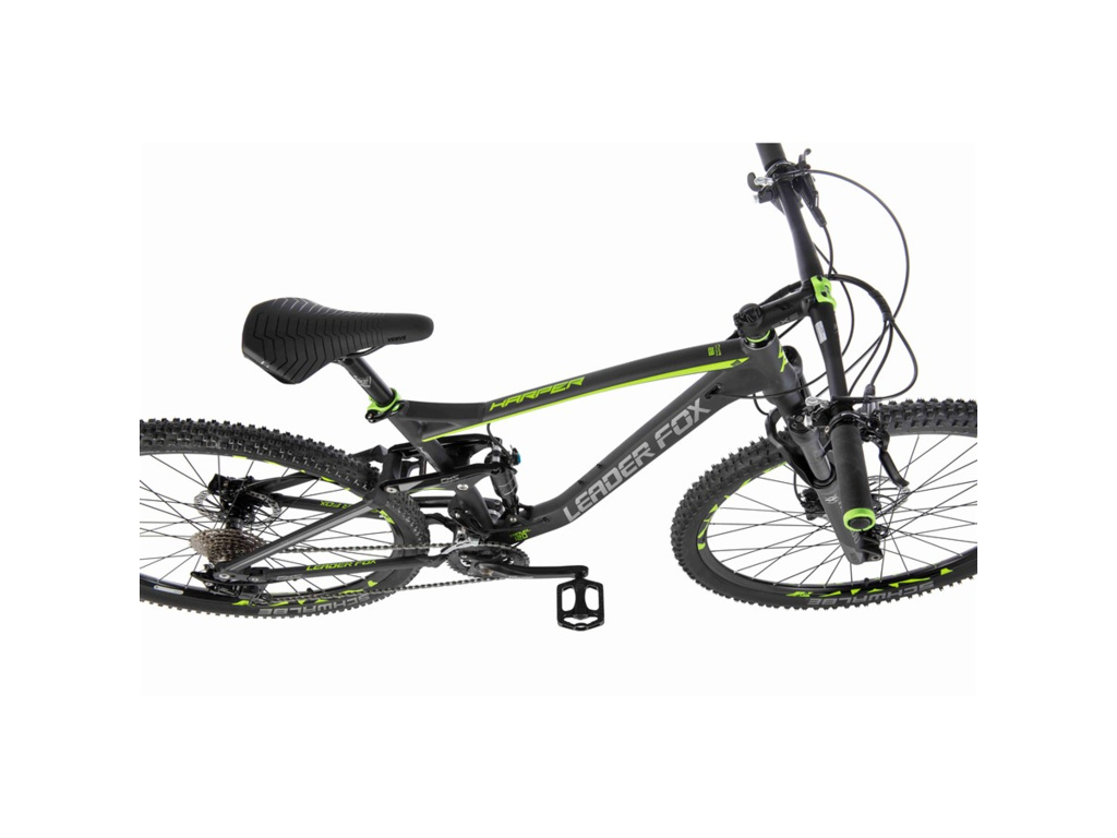 Leader Fox Harper je nový model celoodpruženého kola, které je vhodné pro sportovní ježdění po horách i v lehkém terénu. Základem je lehký hliníkový rám, který je osazen 29 palcovými koly obutými do kevlarových plášťů Schwalbe, vzduchovým odpružením