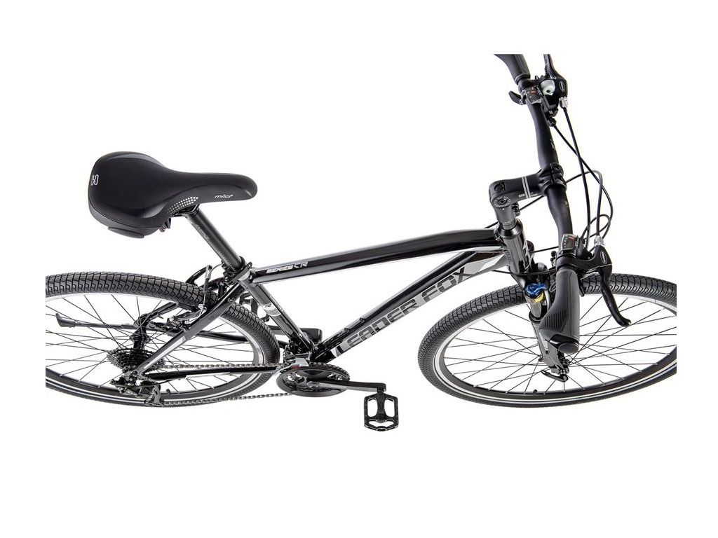 Pánské krosové kolo Leader Fox Toscana nabízí milovníkům svižné jízdy dostatek výkonu na asfaltu, ale zároveň díky přednímu odpružení i komfort na polních cestách nebo lesních pěšinách. Osazení tvoří komponenty s 3x9 převody a ráfkové brzdy Tektro.