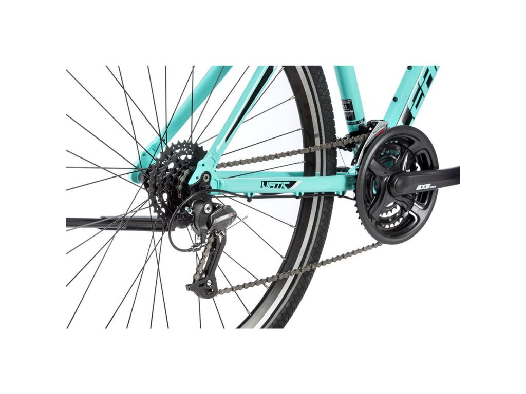 Dámské krosové kolo Leader Fox Viatic pro nenáročné cyklistky a rekreační použití. Základem je lehký hliníkový rám, odpružená vidlice s uzamykáním a spolehlivé komponenty s páčkovým řazením, 3x7 převody a ráfkovými brzdami Tektro.