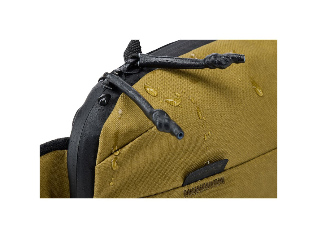 Voděodolný zip a vnější materiál z voskovaného plátna uchovají uložené věci v bezpečí i při nepříznivém počasí