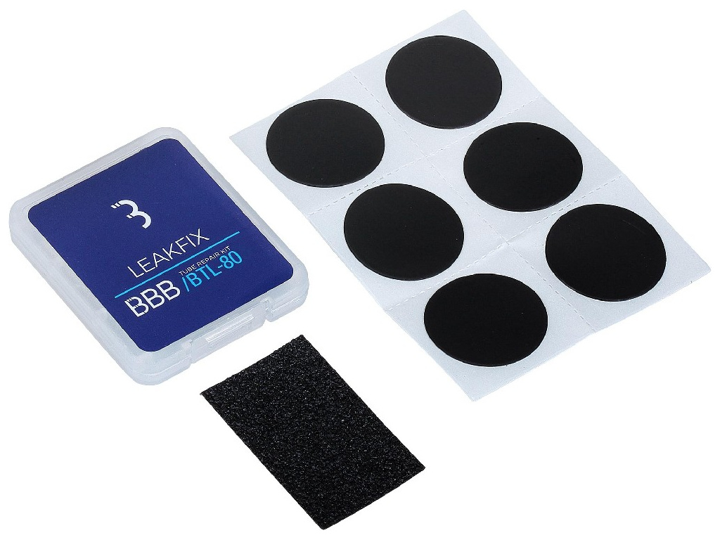 Samolepící sada BBB LeakFix slouží k opravě poškozených duší. Při opravě není potřeba lepidlo, opravné záplaty jsou samolepící. Sada obsahuje smirkový papír a opravné záplaty.