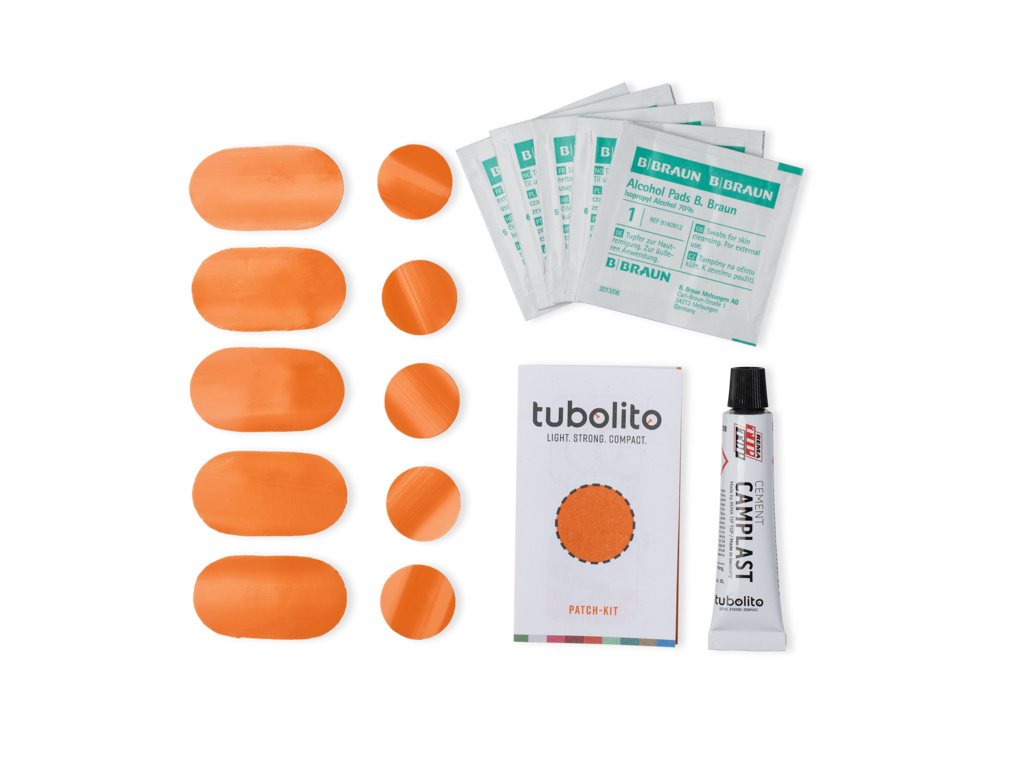 Sada Tubo-Patch-Kit pro opravu duší Tubolito. Zvýšená tepelná odolnost zajišťuje spolehlivé utěsnění i při vyšších teplotách.
