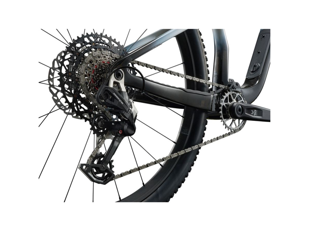 - Rám: Advanced SL-grade composite front and rear triangles, 120mm FlexPoint Pro suspension, flip chip, 12x148mm thru-axle, internal storage
