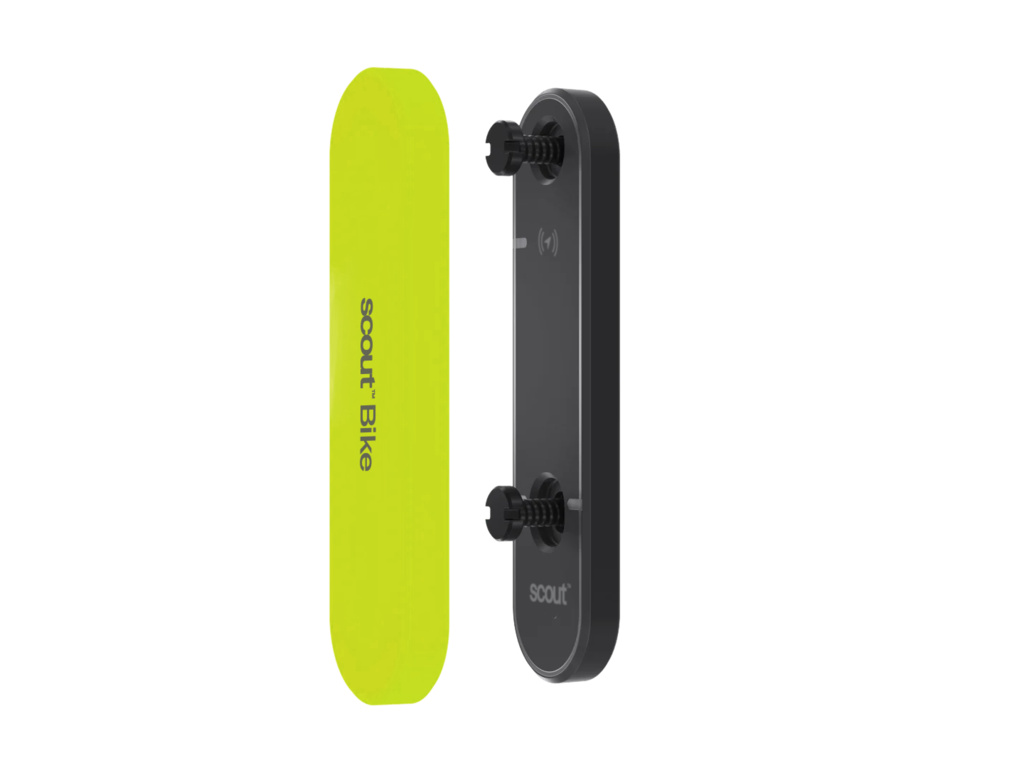Se zařízením Scout máte na výběr mezi zjevným a diskrétním zabezpečením. Chcete-li propagovat, že je kolo vybaveno zařízením Scout, jednoduše použijte dodaný neonově žlutý silikonový kryt. Pro diskrétnější zabezpečení připevněte Scout na kolo pomocí držáků na košík na láhev pomocí bezpečnostních šroubů odolných proti manipulaci bez krytu.