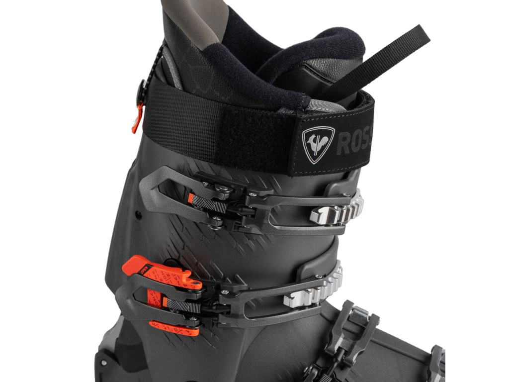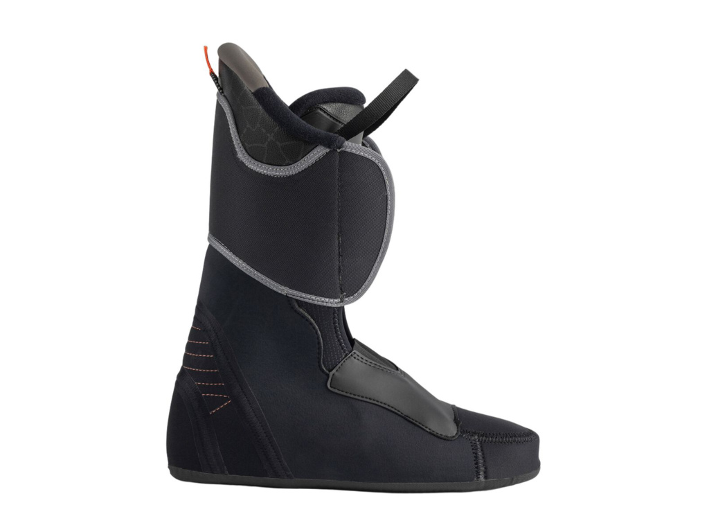 Skelet s Medium Volume Fit (šířka 100 mm) je určen pro sportovně založené lyžaře, kteří chtějí stabilitu i komfort během celého dne. Bi-Injected Spoiler kombinuje pevný PU materiál pro spolehlivou oporu a přenos energie s pružnými bočními částmi, které se přirozeně přizpůsobí lýtku a zajistí těsné utěsnění při zapnutí.