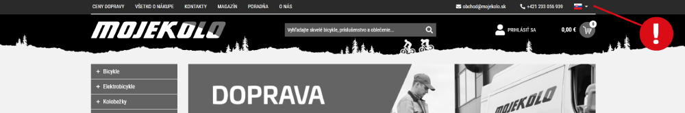 Jazyk, měnu a stát pro doručení zboží změníte jedním klikem. Stačí přepnout vlaječku v pravém horním rohu e-shopu. Pak už můžete vybírat zboží, přidávat do košíku a objednávat. V nabídce Mojekolo.sk máme dobře známá kola a elektrokola značek Ghost, Lapierre, Norco, Merida, Rock Machine aj. a desítky tisíc cyklodoplňků, dresů a treter od firem Knog, SKS Germany, Cratoni, Continental, Fulcrum, FLR, Exustar, Santini či Endura. Na telefonu +421 233 056 939 nebo e-mailu obchod@mojekolo.sk pak čeká tým cyklistických specialistů, kteří jsou připraveni poradit s výběrem čehokoliv.