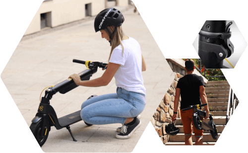 Na elektrokoloběžce prosvištíte městem minimálně stejně rychle jako na kole a bez námahy. Její výhodou je i to, že vás stejně pohodlně sveze v riflích, obleku, upnuté sukni nebo v montérkách, což se o jízdním kole říct nedá. Dalším plusem jsou kompaktní rozměry koloběžky a možnost ji složit. Na rozdíl od svého kola tak nemusíte koloběžku nechávat stát celý den v kolárně bez dozoru, ale můžete si ji vzít s sebou do práce a složenou uschovat pod stolem nebo dokonce v šatní skříňce.