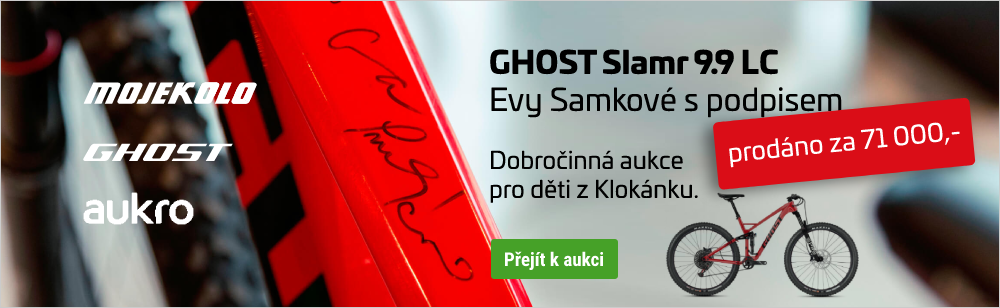 Poznali spolu dřinu, když ladili formu na snowboardcrossové mistrovství světa 2021 ve Švédsku. Ale užili si i kopec zábavy, když brouzdali Českem při natáčení televizního pořadu "Českem nejen za sportem". Teď jde celoodpružený GHOST Evy Samkové do aukce a Mojekolo, jako organizátor akce, věnuje výtěžek dětem z projektu Klokánek. Od 25. 3. do 4. 4. 2022 se do dobročinné aukce můžete zapojit i vy.