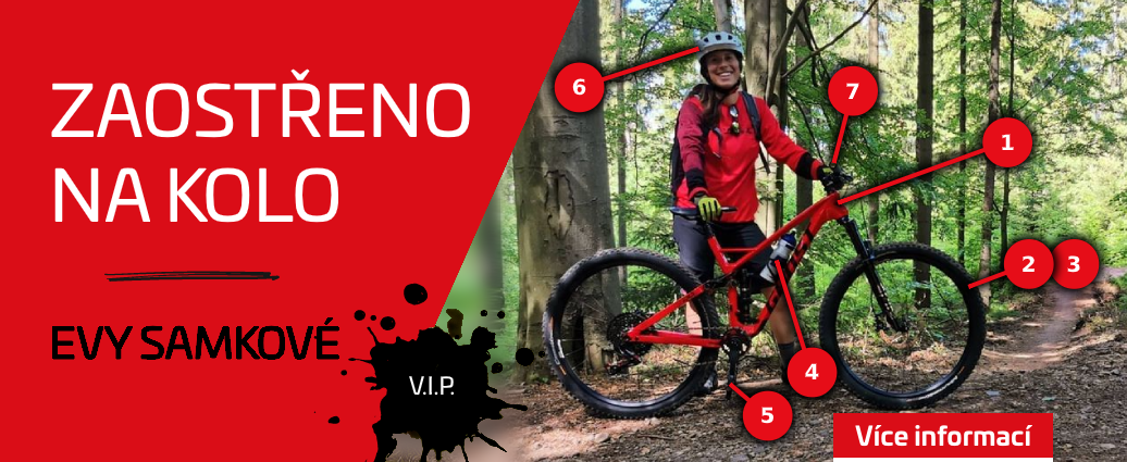 Červený GHOST Slamr 9.9 LC ve velikosti M (vhodný pro postavy s výškou 172-180 cm) sedlá Eva od podzimu 2019 a když si ho odvážela z žižkovské prodejny MOJEKOLO Praha, měl na sobě cenovku 104 990 Kč. Od té doby si Evin celoodpružený all-mountain stroj užil pozornost kamer České televize, sjel nejzajímavější české traily, ochutnal pot i slzy při trénincích vrcholové sportovkyně.