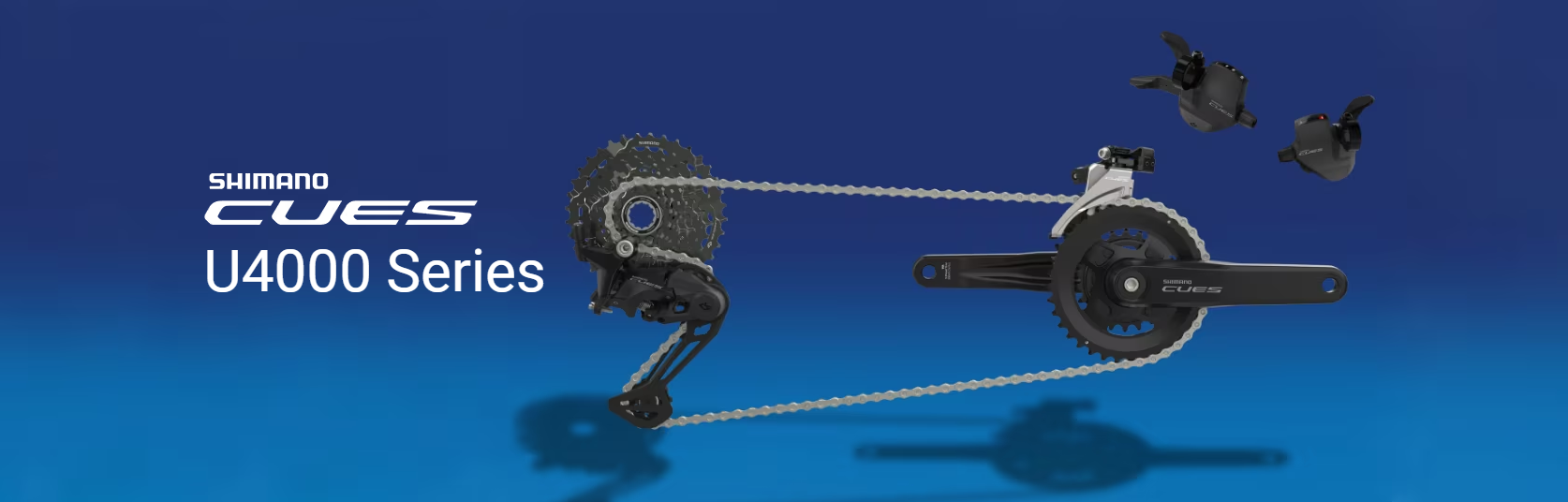 Shimano Cues U4000 je základní 9rychlostní sada s širokou škálou komponentů. Nabízí rozsah kazet 11-36, 11-42 a 11-46 s dvojpřevodníkem (36/22, 40/26, 46/30 zubů) nebo jednopřevodníkem (30, 32, 40, 42 zubů).