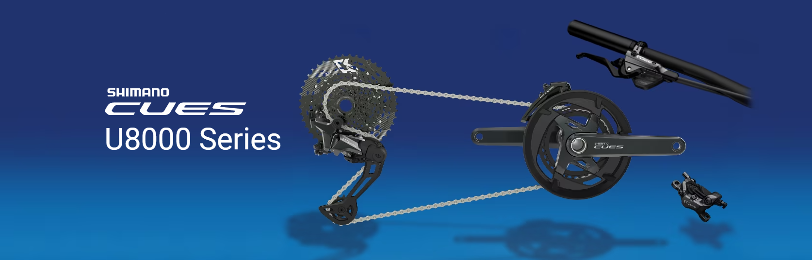 Nejvyšší řada Cues U8000 s 11rychlostní kazetou – nástupce sady Deore – dostala prémiovou povrchovou úpravu. Kovový lesk “osmitisícovky” dodává kolům na atraktivitě. Kliky v provedení Hollowtech mají jednopřevodník se 40 a 42 zuby, nebo dvojpřevodník (46/36). Kazeta má rozsah 11-45, případně lze použít i kazetu 11-50.