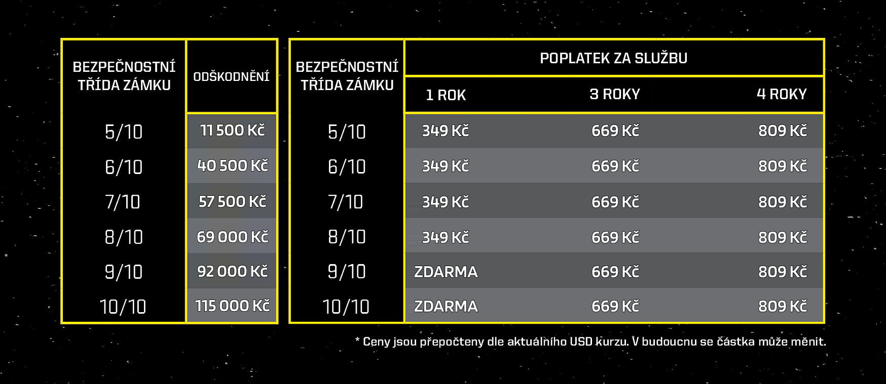 - program Key Safe - při ztrátě klíčů zaslání 1. páru standardních náhradních klíčů zdarma (nutná registrace, další klíče za poplatek)