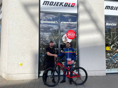 Celoodpružené kolo Ghost se nakonec podařilo vydražit panu Tomáši Koknovi, který svým příhozem 71 000 Kč přebil ostatní účastníky a stal se novým majitelem kola. Předání kola proběhlo koncem dubna v naší brněnské prodejně Mojekolo. Nový majitel mu pak našel čestné místo přímo v sídle své firmy.
